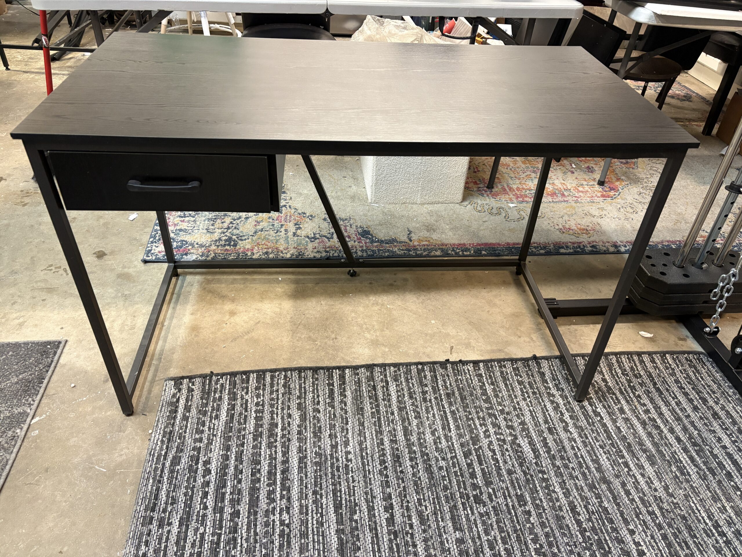 Desk with Metal Legs and Drawer. Black. 47.25 x 23.75 x 29.5"H quantity